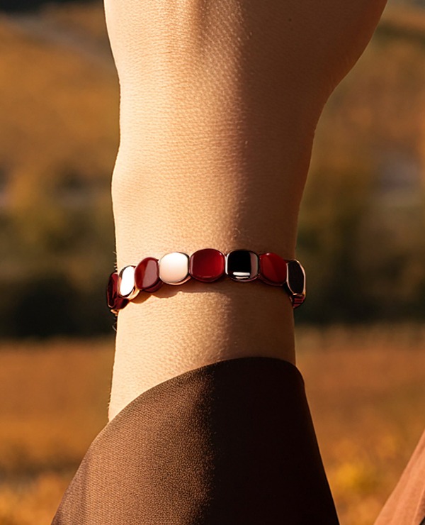 Découvrez la parfaite rencontre entre l'émail et la nacre. Une collection de bijoux uniques où l'association des matières s'inspire de la beauté de l'Italie.