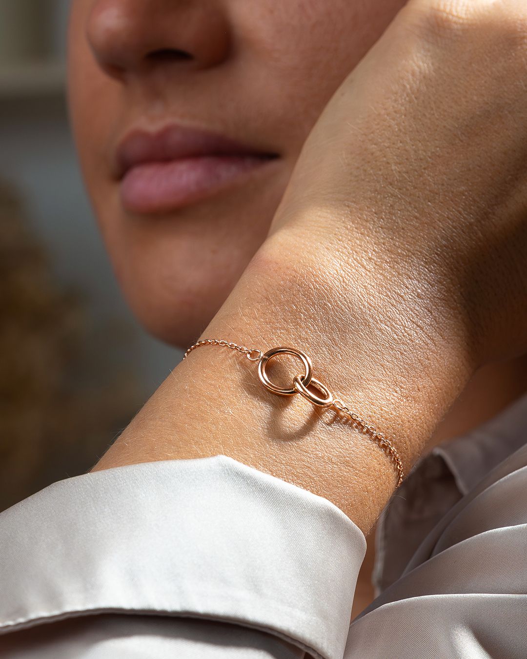 Le bracelet Eternitia se distingue par ses deux cercles entrelacés.