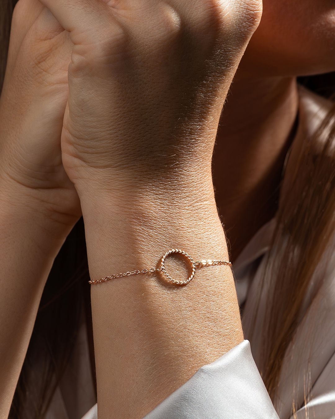 Le bracelet Harmonia séduit par son anneau au motif torsadé.