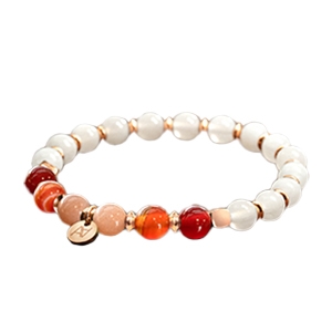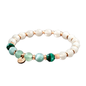 Le reste du bracelet est entièrement composé de Pierre de lune, une gemme lumineuse très appréciée pour son éclat nacré et son jeu de lumière délicat, qui unit l'ensemble de la création.