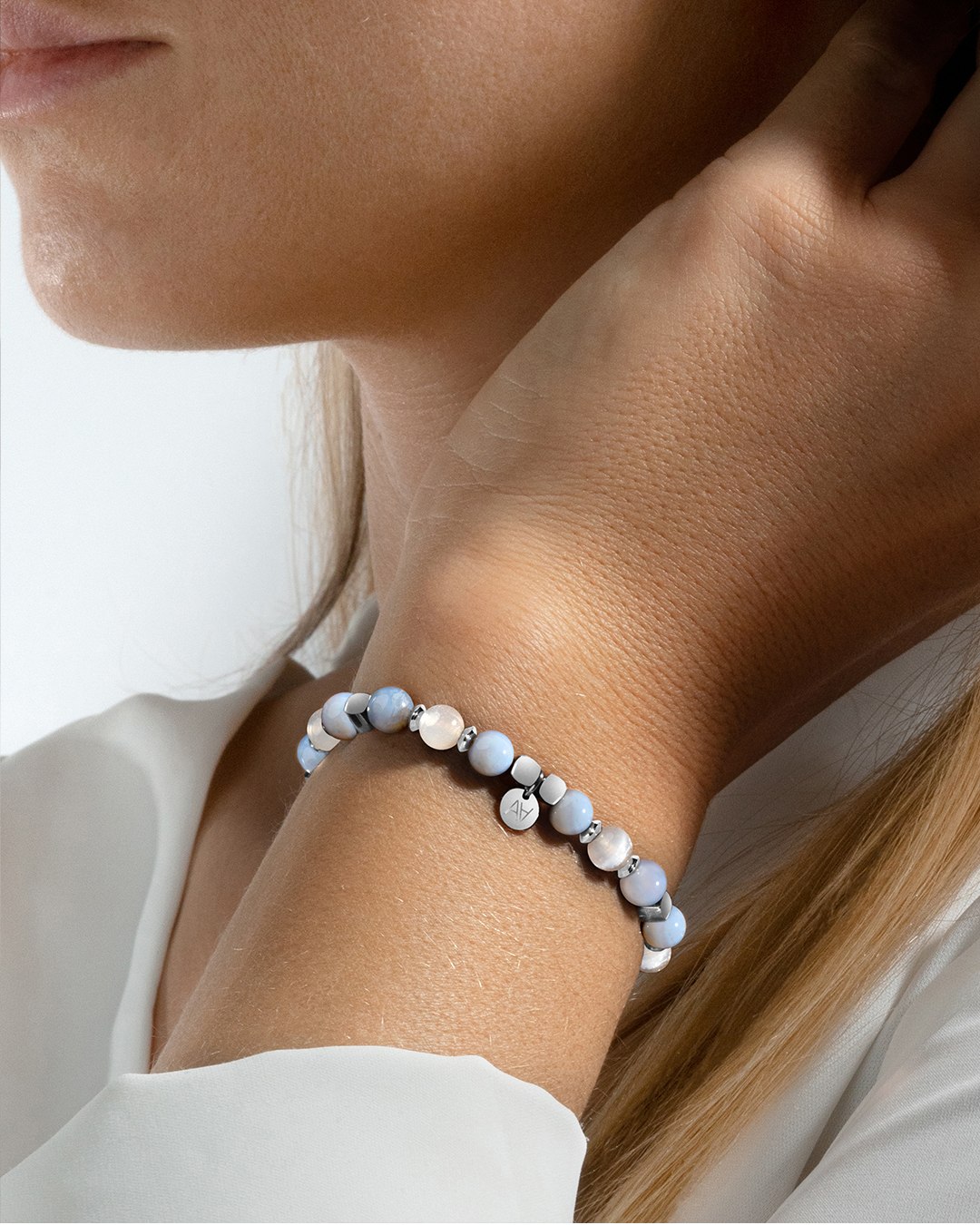 La dimension symbolique de cette association est également puissante. Le bracelet évoque la sérénité de la Vierge Marie et l'âme du sage de la tradition indienne, tout en rappelant le cycle de la naissance, de la vie et de la mort symbolisé par la Sélénite.