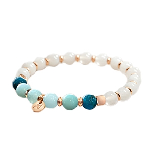 Le reste du bracelet est entièrement composé de Pierre de lune, une gemme très appréciée pour son éclat laiteux et son magnifique jeu de lumière nacré ou bleuté appelé adularescence,