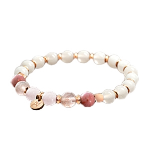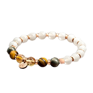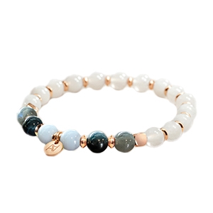 Le reste du bracelet est entièrement composé de Pierre de lune, une gemme célèbre pour son magnifique éclat nacré et ses reflets lumineux caractéristiques.