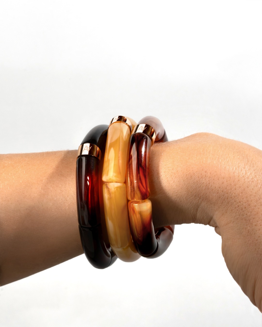 Découvrez l’élégance intemporelle du bracelet en acétate aux couleur de l'ambre fumé signé Anna Velazia, une pièce unique qui incarne le savoir-faire artisanal et l’amour des détails.