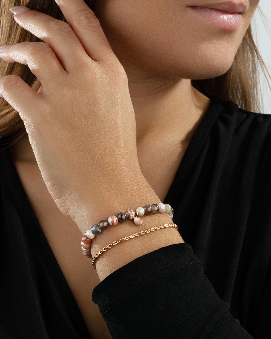Le bracelet Mia Rosa se caractérise par une chaine délicatement torsadée en acier rosé inoxydable.