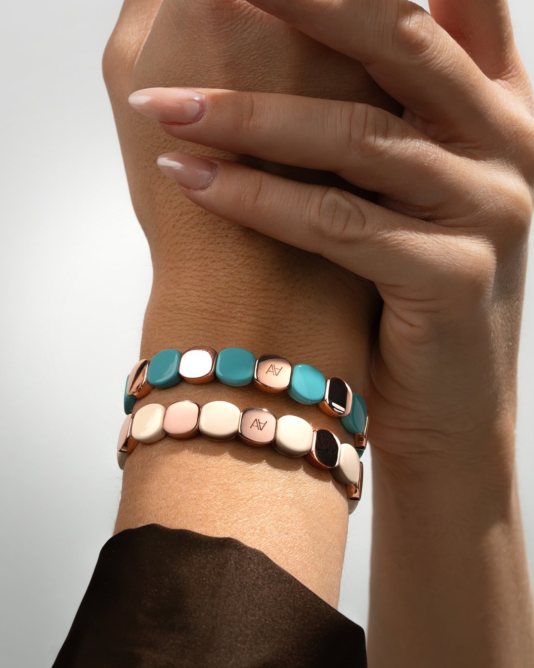 Raffiné et lumineux, il séduit par son jeu d’alternance délicat entre le métal rosé et le métal beige, créant un contraste subtil qui capte la lumière avec grâce.