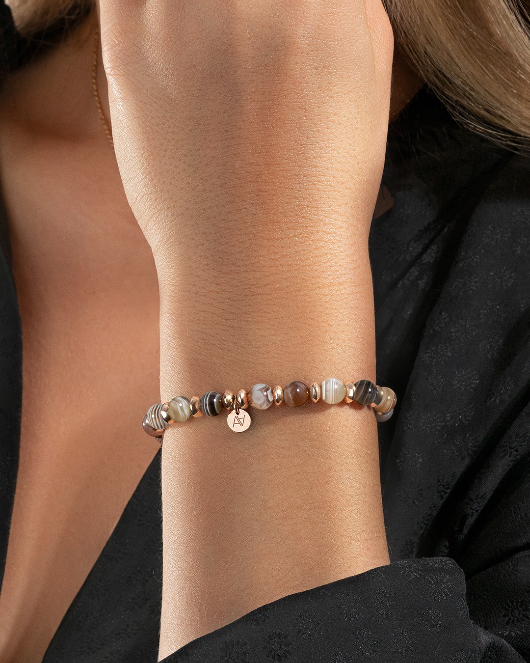 - Matière du bracelet Acier rosé inoxydable et agate du Botswana