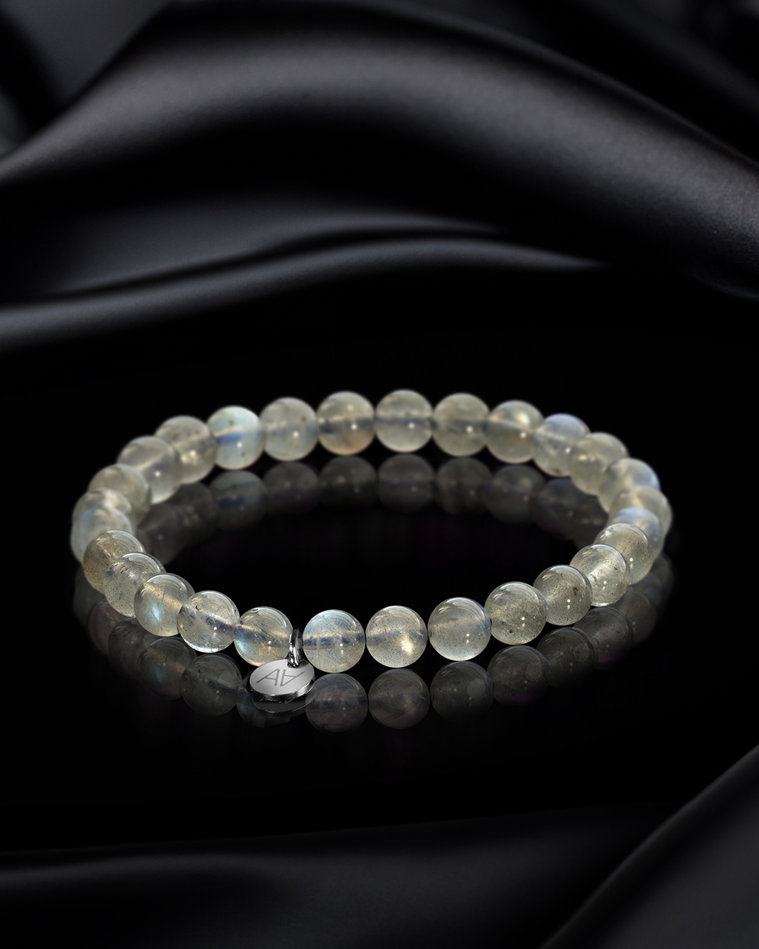 • Matière du bracelet Acier argenté inoxydable et labradorite