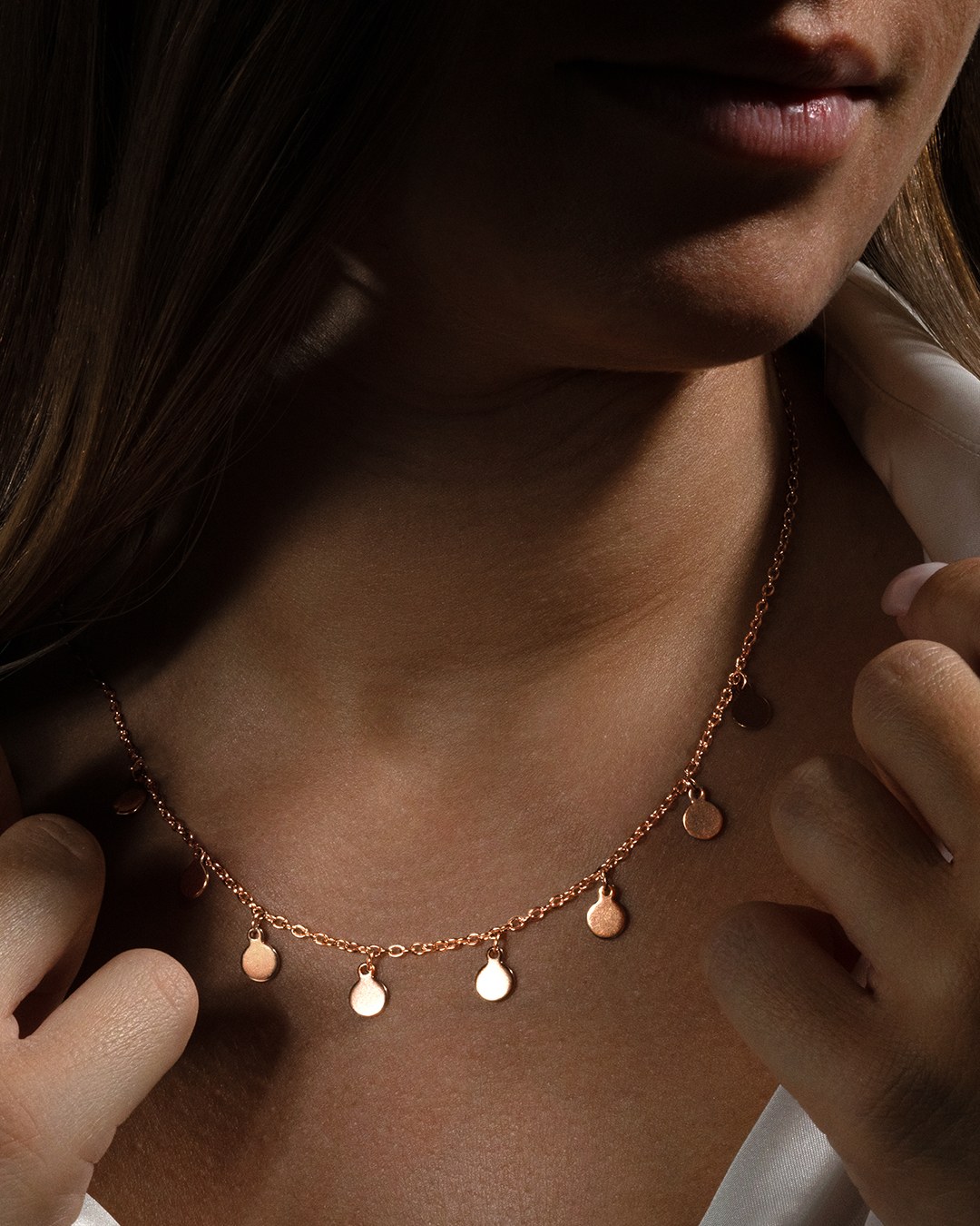 Le collier Giulettana Rosa se caractérise par une chaîne élégante ornée de pampilles délicates, en acier rosé inoxydable.