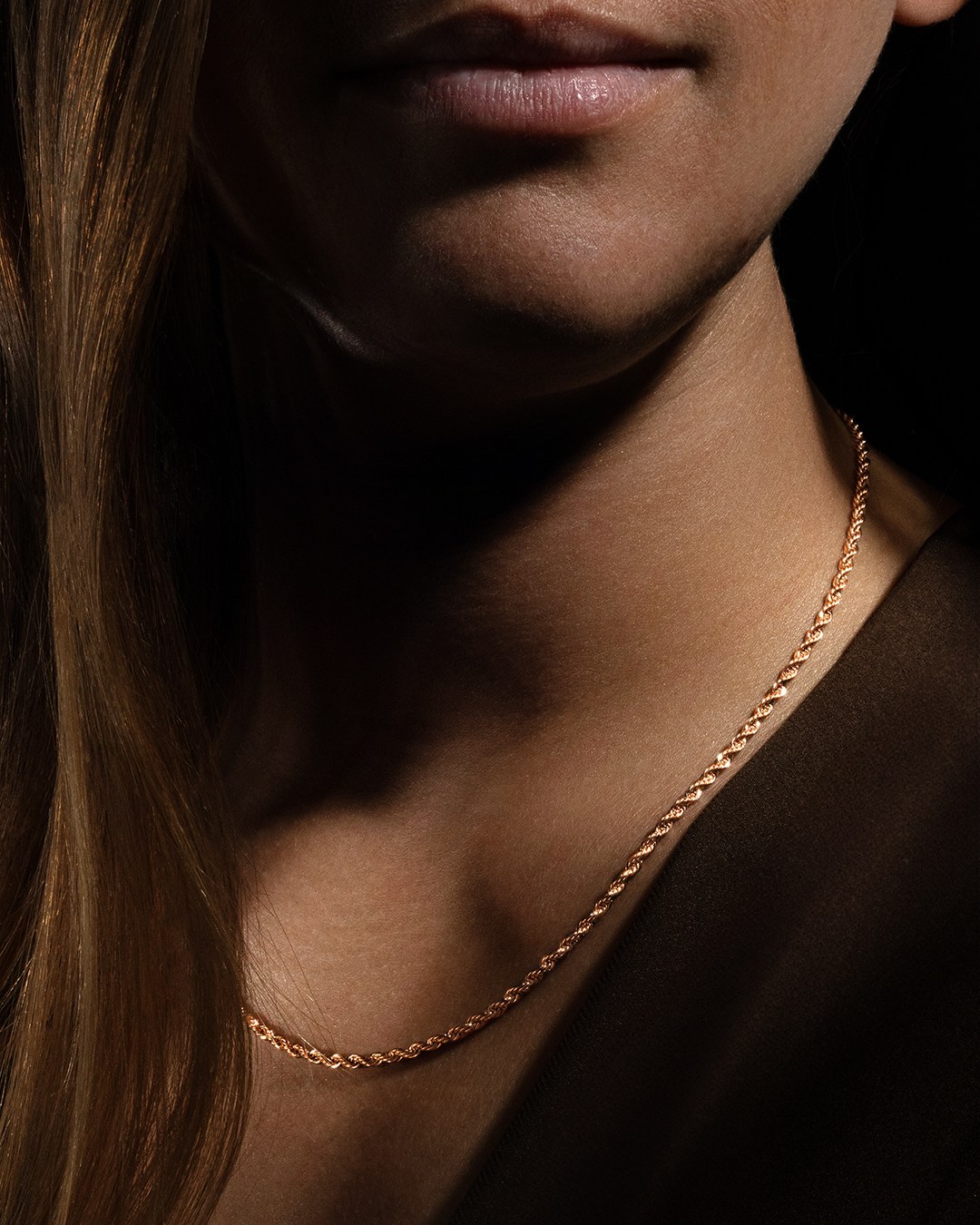 Le collier Mina Rosa se caractérise par une chaine délicatement torsadée en acier rosé inoxydable.